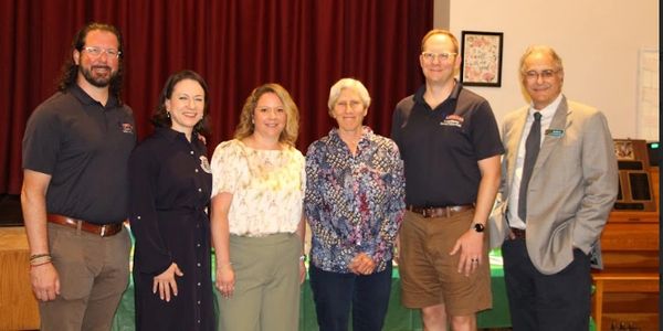 Morristown Council President Nathan Umbriac and fellow committeeman, Assemblywoman Aura Dunn, COG Executive Director Yen Glossy, COG Board President Jody Marcus, Steve Pylypchuk whose daughter attends COG, and Morris Township Committeeman Bud Ravitz.